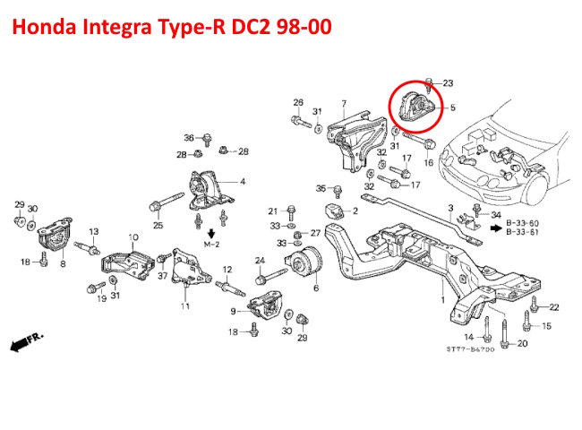 Support moteur et boîte de vitesses arrière Honda Integra Type-R DC2 98-00 / Civic VTI EK4 96-00